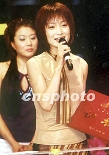 中國蒙古族女歌手斯琴格日樂,日前在《中國流行歌曲榜》年度頒獎晚會上獲得最佳新人獎。圖為她在領獎臺上向歌迷致意。中新社記者 錢興強 攝