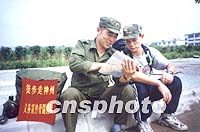 圖:雙癌患者徒步萬里呼吁國人捐獻骨髓 2001年06月28日 19:43 ![]() 解放軍駐京某部前少校軍官隋繼國,以雙癌(腦癌和血癌)之軀徒步萬里,自費宣傳骨髓捐獻,二十八日抵達深圳。香港居民黃福榮為隋的壯舉所感動,中途加入,與隋同行。圖為隋繼國(左)與黃福榮在進入深圳市前一起研究行程。中新社記者 馮昶 攝