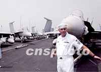 組圖:美國海軍航空母艦“星座號”抵達香港訪問 2001年08月20日 17:35 ![]() 美國海軍航空母艦“星座號”20日抵達香港訪問,該艦載有約八十架戰機,是美國現役海軍最具規模的船艦之一。中新社傳真 盧峰 攝 ![]() 美國航空母艦“星座號”20日抵達香港,進行補給及維修,并公開予傳媒參觀。圖為一名海軍士兵向傳媒介紹艦上設施。中新社傳真 盧峰 攝
