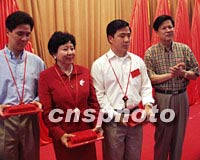 圖文:孫穗芳被授予海南文昌榮譽市民 2001年10月19日 06:00 ![]() 海南文昌市18日授予孫穗芳(左二)榮譽市民稱號,并向孫女士贈送金鑰匙一把,以表彰孫穗芳對文昌宋氏祖居的關切和支持。孫穗芳的兩個兒子王祖榮和王祖耀同時被授予榮譽市民。中新社圖 王辛莉 攝