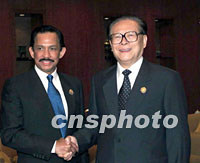 10月20日,中國國家主席江澤民在上海會見文萊蘇丹哈吉·哈桑納爾·博爾基亞。中新社圖