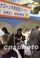 圖:日本力圖喚起人們對國產牛肉的信心 2001年11月19日 15:11 ![]() 日本人一向嗜食牛肉,雖然瘋牛病問題鬧得人心惶惶,但東京“食肉市場節”上免費品嘗仍吸引了不少牛肉美食家。圖為人們在爭著品嘗受精卵克隆牛肉。中新社記者 陶光雄 攝 |