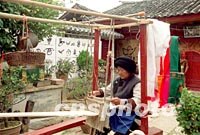 圖:麗江納西族老婦傳統紡織