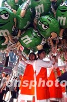 四月十六日香港電訊盈科在崇光百貨門前進行獨家代理M & M的潮流電子產品宣傳,并為市民派發禮品吸引許多路人。中新社記者 任海霞 攝