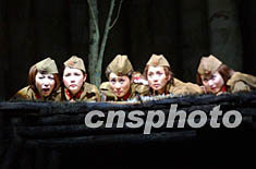 通訊:話劇《這里的黎明靜悄悄》的三大看點(diǎn) 2002年04月27日 23:34 ![]() ![]() 一部由前蘇聯(lián)作品改編的話劇《這里的黎明靜悄悄》二十六日晚在北京首都劇場進(jìn)行最后一次排演,這是中國國家話劇院成立后推出的首部大戲,張豐毅、凱麗等在劇中擔(dān)任主演。中新社圖 武仲林 攝