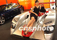 ![]() 一名黑衣模特躺在身經百戰的銀色賽車上,使北京六月的國際汽車展富于美女名車的剛柔之情。賈國榮 攝