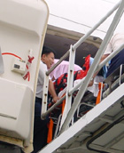 圖文:劉海若在SOS幫助下抵京 順利入住宣武醫院 2002年06月08日 18:58 ![]() 升降臺上的擔架把劉海若從機艙內接出 中新網香港6月8日消息:在倫敦火車出軌事故中受傷昏迷的鳳凰衛視女主播劉海若,在國際SOS救援中心的幫助下經過長途飛行,于今天下午抵達北京,順利入住北京市宣武醫院接受繼續治療。 根據鳳凰衛視的消息,依然昏迷不醒的劉海若在姐姐、姐夫和SOS醫護人員的陪同下,乘坐中國國航波音747飛機于北京時間2點25分左右抵達北京首都機場,2點45分被醫護人員用擔架抬出機艙,隨后即由救護車直接送往北京宣武醫院。 擔架上的劉海若還掛著點滴,她的全身被藍色毛毯緊緊裹住,頭部和胸部也被一個北京醫護方面事先準備好的粉紅色大紗罩罩住。由于北京市宣武醫院準備充分,劉海若的擔架一被抬下救護車就立即被送往住院部4層的神經外科病房。 鳳凰衛視董事局主席、行政總裁劉長樂和在北京工作的鳳凰同仁今天很早就趕到了機場等候劉海若的飛機,并一路陪同劉海若抵達宣武醫院。 北京宣武醫院治療腦神經有豐富的經驗,該院的專家凌鋒醫生曾于5月份專程前往倫敦探診劉海若,熟悉劉海若的傷勢病情,劉海若轉往該醫院繼續治療可以保持治療的連貫性。 相關報道:劉海若乘國航班機抵京 到宣武醫院接受進一步治療 相關報道:劉海若將于明天下午飛抵北京 宣武醫院準備就緒 相關報道:劉海若仍昏迷不醒 家屬決定7日啟程赴北京治療 相關報道:家人證實劉海若將送京治療 凌鋒醫生將再赴倫敦