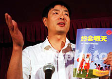 圖:濮存昕介紹《約會明天禁毒教育讀本》 2002年06月26日 21:46 ![]() 著名演員、新上任的北京市禁毒教育義務宣傳員濮存昕,二十六日在北京市禁毒教育基地向中小學生介紹《約會明天:2002年中國青少年禁毒教育讀本》的內容。作者:杜洋