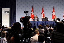 時間:6月23日-6月27日 地點:加拿大渥太華、多倫多 行程:胡錦濤將分別會見加拿大總督米夏埃爾•讓與總理斯蒂芬•哈珀,兩國政府有關部門和企業將簽署若干合作協議。 意義:中國國家元首5年來首次對加拿大進行訪問,對中加關系發展具有重大意義 G20峰會 時間:6月26日-6月27日 G20峰會 主要議題:此次峰會將涉及世界經濟形勢,歐洲主權債務危機,強勁、可持續和平衡增長框架,國際金融機構改革,國際貿易和金融監管等領域