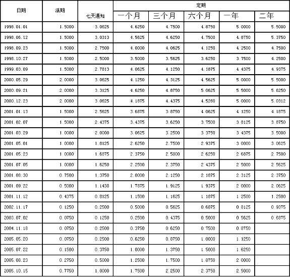 據(jù)顯示,98年以來,中國對境內(nèi)美元存款利率調(diào)整了24次。10月15日,境內(nèi)美元活期存款利率調(diào)整為0.7750%。定期一個(gè)月、三個(gè)月、六個(gè)月、一年利率分別調(diào)整為1.75%、2.25%、2.375%和2.5%,這次是2005年的第四次調(diào)整,比8月23日調(diào)整后的利率再次提高0.5%。