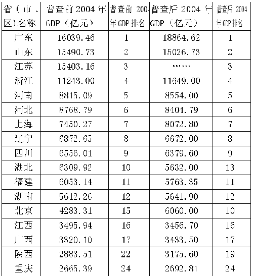 從此次經(jīng)濟普查結(jié)果來看,經(jīng)國家統(tǒng)計局抽查,數(shù)據(jù)填報的綜合差錯率僅為4.9‰,讓這些注水數(shù)字無所遁形,于是共有12個省2004年GDP數(shù)字將下調(diào)。