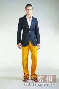 以單色為主的本季男裝今年更偏向于成熟的橙色、黃色等暖色調。