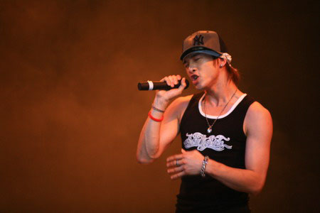 張文謙(Marcus)一出場,觀眾席里女生的尖叫便排山倒海,從未間斷過,由此證明這位帥氣的陽光大男孩的人氣可見一斑。當然,Marcus也未辜負觀眾的期望,舞臺上賣力的舞蹈與盡情的歌唱博得了許多好評,讓不少女生為之瘋狂。雖然其伴舞陣容并不如凌蕾強大,但身為街舞的個中好手,其一人的精彩舞蹈便使在場觀眾佩服得五體投地,不得不報以熱烈的掌聲。對于這個能歌善舞的俊秀男孩,特此頒發帥氣十足最佳形象獎。