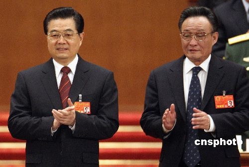 圖:胡錦濤、吳邦國(guó)出席全國(guó)人大第三次全體會(huì)議