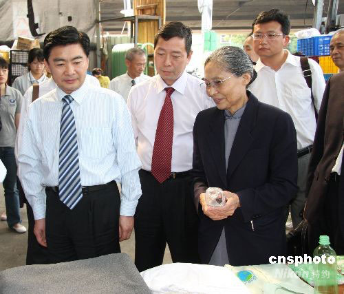 中共江蘇省委常委、蘇州市委書記王榮率領(lǐng)蘇州市副市長及太倉市副市長一行抵達(dá)臺灣參訪。十月一日下午,王榮一行參觀慈濟在臺北市八德路的環(huán)保教育站。慈濟的義工請王榮觀看她們用手中回收的這種塑料瓶加工制作的衣物和毯子,這些再利用的物品曾捐助四川地震災(zāi)區(qū)。中新社發(fā) 耿軍 攝