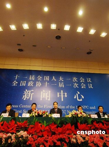 三月十四日下午,銀監(jiān)會(huì)及有關(guān)負(fù)責(zé)人、部分全國(guó)人大代表,在大會(huì)新聞中心就銀行業(yè)支持“三農(nóng)”和小企業(yè)發(fā)展工作情況,接受中外記者集體采訪。中新社發(fā) 王東明 攝