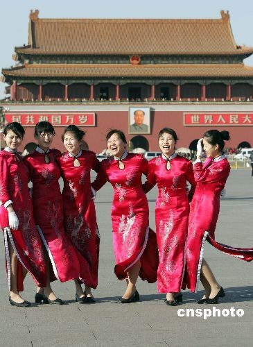 兩會工作人員天安門廣場喜留倩影