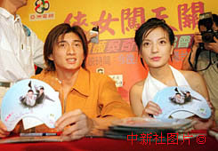 歌影視紅星趙薇、吳奇隆31日在香港出席電視劇“俠女闖天關”簽名會宣傳活動。中新社傳真 鄧慶樂攝