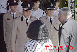 香港行政長官董建華20日在殯儀館參加因公殉職的香港高級入境事務主任梁錦光喪禮。中新社傳真洪少葵攝
