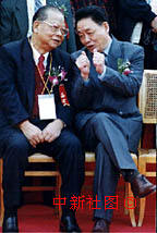 二十日,出席在福建龍巖舉辦的世界客屬第十六屆懇親大會(huì)開(kāi)幕式的國(guó)務(wù)院僑辦主任郭東坡(右一)與香港知名人士曾憲梓親切交談。中新社記者 劉可耕 攝