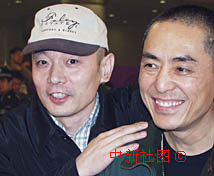 第九屆中國金雞百花電影節頒獎儀式二十一日晚在廣西南寧市人民代表大會堂舉行,中國著名電影導演張藝謀獲本屆 金雞電影獎最佳導演獎。圖為著名電影演員葛優向張藝謀祝賀。中新社記者 錢興強 攝