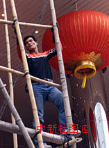 圖文:澳門為回歸一周年慶典懸掛燈籠增添喜慶氣氛