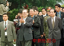 新聞組照:江澤民、錢其琛、何厚鏵參觀澳門大炮臺 2000年12月20日 19:03 ![]() 國家主席江澤民、國務院副總理錢其琛、澳門特別行政區行政長官何厚鏵20日下午參觀澳門大炮臺。中新社傳真 滿會喬 攝 ![]() 國家主席江澤民、國務院副總理錢其琛、澳門特別行政區行政長官何厚鏵20日下午參觀澳門大炮臺時,聽到游客問候后高興回應。中新社傳真 滿會喬 攝