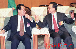 李瑞環主席(左)與溫家寶副總理親切交談 2000年3月10日 08:56 ![]()