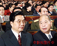 胡錦濤與尉健行出席九屆全國人大三次會議預(yù)備會議 2000年3月5日 11:55 ![]()