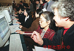 人大代表董(金+監)昭在電腦上查閱資料 2000年3月7日 08:51 ![]()