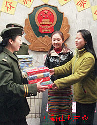 藝術家慰問保衛兩會的公安干警 2000年3月7日 08:52 ![]()