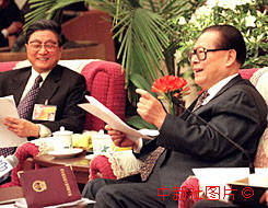 江澤民主席到全國人大上海代表團參加討論 2000年3月8日 08:32 ![]()