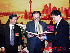 上海把《浦東開發開放十年、江總書記十下浦東》影集贈送江澤民主席 2000年3月8日 08:34 ![]()