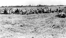 圖文:雞公山水稻畝產四萬八真相 2000年6月13日 16:36 ![]() 安徽省樅陽縣一塊號稱畝產1·6萬斤的 “衛星田”。田里的稻子是從各地移來的 ![]() 大躍進中,農民表決心。照片據《圖片中國百年史》 張勝林(河南信陽) 1958年9月1日,信陽縣雞公山人民公社新集大隊放出河南省水稻畝產特大“衛星”:6畝6分3厘干部水 稻試驗田總產324375·5斤,平均畝產48925·7斤。這顆大“衛星”升天后,新華社隨即發了消息,轟動全國。 全省各級領導親臨參觀和總結經驗,9月9日《河南日報》第二版以“雞公山上紅旗插,水稻畝產四萬八”的醒目標題,對大 “衛星”的組織施放作了詳細報道。 這個被大躍進狂風吹起來的水稻“衛星”,雖在當時被歌頌為信陽人民農業大躍進的偉大創舉,卻留下了一個謎 :照“衛星”田里的水稻總產量計算,那么,這塊“衛星”田平均每平方米就得產出稻谷73斤。然而,73斤稻谷就是放在 一平方米的空地里,也要堆出一定高度,何況稻谷結在稻穗上,直徑3毫米左右的稻莖又如何承受得了呢? 為了解開這個謎,我們對當年目睹現場的一些同志進行了反復調查訪問。在調訪過程中,這些同志不僅幫助我們 弄清了雞公山水稻畝產“四萬八”的真相,而且訴說了雞公山人民當年吞下這個苦果的難言之苦。 信陽縣越改越大的躍進規劃 1957年,信陽縣和全國一樣,勝利實現和超額完成了國民經濟第一個5年計劃,各條戰線出現了蓬勃發展的 局面。然而,由于從上到下對成績的宣傳夸張,使一些干部的頭腦發熱,在指導方針上出現了急于求成的“左”的冒進。19 58年2月26日,中共信陽縣委召開擴大會議,制定并通過了《信陽縣全面躍進20條規劃》,號召和動員全縣人民投入到 大躍進的洪流之中。 1958年5月,黨的八大二次會議通過總路線:“鼓足干勁,力爭上游,多快好省地建設社會主義”,在信陽 縣宣傳貫徹后,信陽掀起了大躍進的高潮。同月底,中共信陽縣委、縣人委對《信陽縣全面躍進20條規劃》進行了補充修改 ,把1958年全縣糧食總產量從原規劃的8·5億斤提高到“保證實現14億斤,爭取18億斤”(這樣驚人的數字,信陽 縣不僅當年沒有實現,就是時隔30多年后農業年景比較好的1996年,全縣糧食總產量也才達到9·5億斤,為1958 年規劃14億斤的67·8%)。同時,中共信陽縣委還提出“十年規劃,一年實現”的躍進口號。 外地衛星的刺激 1958年6月,廣東省早稻畝產82525斤和河南省西平縣小麥畝產7320斤,這兩顆“衛星”消息傳到 信陽縣后,信陽縣感到鼓舞和震動。7月5日,中共信陽縣委召開擴大會議,縣委提出:“必須認識到今年是農業生產大躍進 的一年,不是要求增產幾成的問題,而是要翻幾番。因此,必須鼓足干勁,爭取更大勝利”。為了放出信陽縣的農業高產“衛 星”,縣委要求“樹立敢想、敢說、敢作、敢為的前進思想,從而解放思想,破除迷信”。 7月,全國宣傳貫徹毛澤東主席關于把工、農、商、學、兵組成為一個大公社的指示,信陽縣聞風而動,在全信 陽地區率先建立人民公社。7月22日,中共信陽縣委在雞公山召開擴大會議,決定撤銷全縣32個鄉、鎮及一個辦事處,成 立12個人民公社。縣委要求,各公社要借人民公社化的東風,更好組織農業生產大躍進,并示意試辦農業“衛星”田塊。 縣委擴大會議結束后,各公社開始籌劃具有本地特色的農業“衛星”,棉花、玉米、紅薯等都被列入“衛星”計 劃之列。 雞公山準備水稻“衛星” 在籌劃“衛星”時,地處豫鄂交界的雞公山人民公社黨委提出,淮河北的西平縣能放出小麥畝產七千三的全國大 “衛星”,我們淮河南的雞公山為何不能利用我們盛產水稻的優勢,放出水稻高產“衛星”?只要有雄心,思想再解放,“ 衛星”定能升天。為了選準“衛星”的試點,公社黨委曾幾次召開會議研究,最終選擇新集大隊的一塊6畝6分3厘干部試驗 田作為“衛星”點。 這塊試驗田在5月5日秧苗移栽時,采用了3×3(行距、株距各3寸)的密植法,加之向這塊試驗田投放的肥 料較多,公社黨委因之認為,這為我們秋收放“衛星”奠定了基礎(經過實踐證明,3×3的密植法是一種違反科學的技術躍 進,它不僅破壞了光合作用,而且也不利于農田管理,但3×3的密植法當時卻作為農業現代化在全縣推廣)。 “調兵借將” 8月下旬,水稻已經基本成熟,臨近收割。雞公山公社黨委于8月下旬連續開會,研究如何放出水稻高產“衛星 ”。公社黨委認為,能否成功放出水稻高產 “衛星”,不僅取決于黨委的信心,而且也取決于黨委一班人的統一認識和統一 口徑(所謂統一認識、統一口徑,就是要求黨委每個成員不要對放水稻高產“衛星”持任何懷疑態度,“衛星升天”是全社人 民的驕傲,也是全縣人民的光榮);而且在向上級匯報中,不準說三道四。這成為雞公山黨委在組織施放水稻高產 “衛星” 中的一條嚴明政治紀律。 放水稻高產“衛星”,必須要內定一個標準,經過黨委研究確定,試驗田里的水稻畝產量不低于45000斤。 這6畝多試驗田,到底能產多少斤水稻,社、隊干部以及試驗田的管理人員心里最清楚。但為了放出水稻高產“ 衛星”,不得不采取“調兵借將”之計。 8月28日晚,雞公山公社黨委在新集大隊召開放水稻高產“衛星”動員大會。黨委要求:參加放“衛星”的所 有社員,要統一組織,所有放“衛星”的行動要聽從社、隊干部的指揮,不該問的絕對不準問,不該講的絕對不準講,如有說 三道四