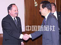 國務院副總理錢其琛十九日在紐約人壽保險公司會見了美國工商金融界人士。美國商會負責人安德爾代表工商金融界歡迎錢其琛訪美,并表示,美工商金融界堅定支持發展對華經貿關系,希望美中關系在新世紀得到更大發展。中新社記者 陳建 攝