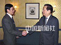 美東時間三月二十三日晚,中國國務院副總理錢其琛在下榻的飯店接受美國《僑報》總編輯鄭衣德的采訪。錢其琛表示,中國愿意同美國共同努力,加強接觸,擴大合作。中新社圖 杜小京 攝