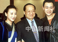 著名武俠文學大師金庸先生,二十六日在京與《笑傲江湖》劇組演員會面。中新社記者 錢興強 攝