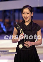 大陸新秀影星秦海璐29日在香港舉行的“第二十屆香港電影金像獎頒獎典禮”上,榮獲本屆金像獎最佳新演員獎。中新社傳真 洪少葵 攝