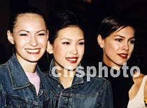 “質感沙宣”2001上海國際時裝模特大賽五月二日晚落下帷幕。圖為冠軍女模特--巴西的卡琳娜·愛澤·安德魯(左一)、亞軍女模特--挪威的瑪瑞特·海倫娜·托雷森(右一)、季軍女模特--中國上海的佟晨潔(中)賽后合影。中新社圖 姜煜 攝