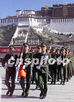 拉薩布達拉宮廣場二十三日舉行隆重的升旗儀式,慶祝西藏和平解放五十周年。中新社記者 滿會喬 攝