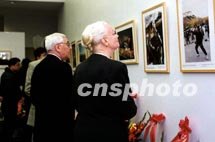 美國外交政策全國委員會的喬治 斯瓦夫和夫人二十五日在紐約饒有興趣地觀看《拉薩一日》圖片展上的精彩照片。中新社圖 龔文謨 攝