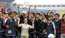 ![]() 歌手高崎6月6日下午參加鳳凰衛(wèi)視申奧車隊(duì)的“明星隊(duì)”,準(zhǔn)備與陜西國(guó)力足球隊(duì)一比高低。魏孝明 攝