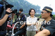 圖文:“萬里行”車隊翻山越嶺抵達蘭州 2001年6月9日 19:34 ![]() ![]() 6月8日上午,萬里行車隊從西安“絲綢之路”起點出發,當地一車友會為車隊送行。圖為鳳凰衛視主持人曾靜漪采訪車友會隊友。中新社圖 魏孝明 攝