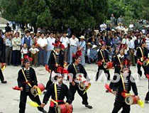 圖:“萬里行”抵達武威市 2001年6月11日 09:16 ![]() 6月10日下午,“萬里行”鳳凰車隊抵達河西走廊東端的武威市。當地老鄉在市區文化廣場以“攻鼓子”方隊歡迎,表達西域人民對北京申奧的支持。中新社圖 魏孝明 攝