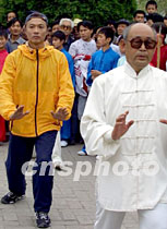 圖:林俊賢與老漢老婦一起打太極