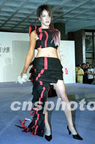 「好男好女-第六屆杰出青年設計(形象創作)大獎」12日在香港理工大學舉行,歌星何韻詩客串模特展示本地參賽作品《變種》,結果該作品與另一參賽作品《陽光》并列大獎。中新社圖 鄧慶樂 攝