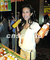 影視歌三棲藝員莫文蔚六月十三日在上海與頂新國際集團簽約,作為其新鮮純果汁“每日C”的形象代言人。據(jù)悉該果汁以新鮮為生命,這也正是莫文蔚所欣賞的。中新社記者 潘索菲 攝