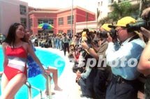 廣州房產開發商促銷新招百出,十七日,一個冠名“南洲名苑”的攝影大賽在該住宅小區舉行,主辦單位特邀一批靚女展示美姿,吸引了數百名攝影發燒友去拍攝。中新社記者 梁永強 攝