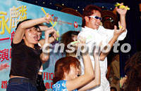 組圖:譚詠麟將于八月在香港舉辦演唱會 2001年06月29日 09:36 ![]() 香港著名歌星譚詠麟將于八月在香港會展中心舉辦演唱會,28日譚詠麟在繽紛荷里活餐廳與舞蹈藝員載歌載舞為宣傳活動拉開序幕。中新社傳真 洪少葵 攝 ![]() 香港著名歌星譚詠麟28日在繽紛荷里活餐廳舉辦記者會,為八月份「譚詠麟2001──飛一般演唱會」造勢。中新社傳真 洪少葵 攝
