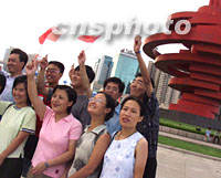 組圖:申奧之夜激情飛揚 2001年07月13日 23:45 ![]() 十三日晚,福建省各界青年來到福州五一廣場高舉北京2008年申奧旗幟,滿懷激情歡呼北京申奧成功。中新社圖 劉可耕 攝 ![]() 手舉中國國旗和申奧標志的游客十三日下午在青島五四廣場上齊聲高呼:相約北京,揚帆青島。作為協辦城市,青島正積極地為申奧工作做最后的準備。中新社記者 鄭萍萍 攝